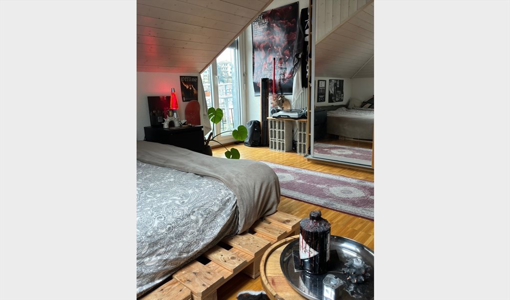 La chambre est spacieuse et donne accès au rooftop.
