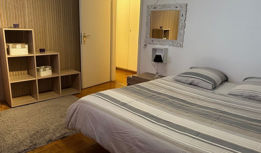 Grande chambre meublée, lumineuse et calme, vue sur le jardin, équipée d'un lit king size, bureau, TV, wifi, fauteuil, commode, corridor avec armoires, grande salle de bain avec wc et baignoire.