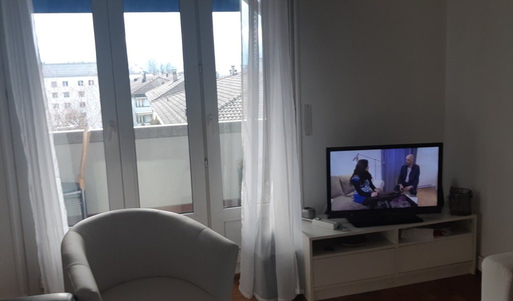 Appartement de 3 1/2 pieces, vue sur le lac, balcon, cuisine, salle de bain et salon.