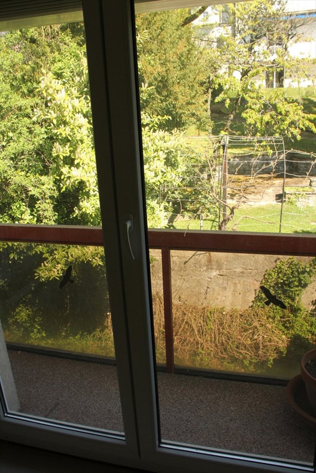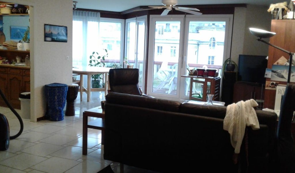 Appart lumineux avec grandes portes vitrées à l’avant.