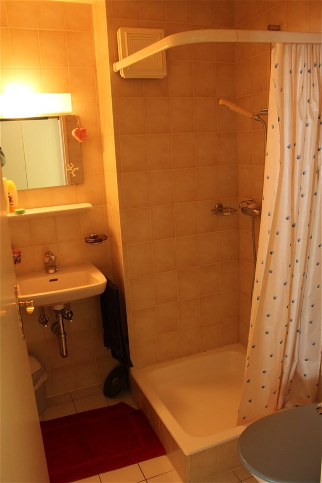 Independent bathroom with shower.