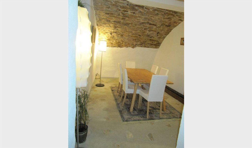 Salle à manger avec plafond en pierre jaune